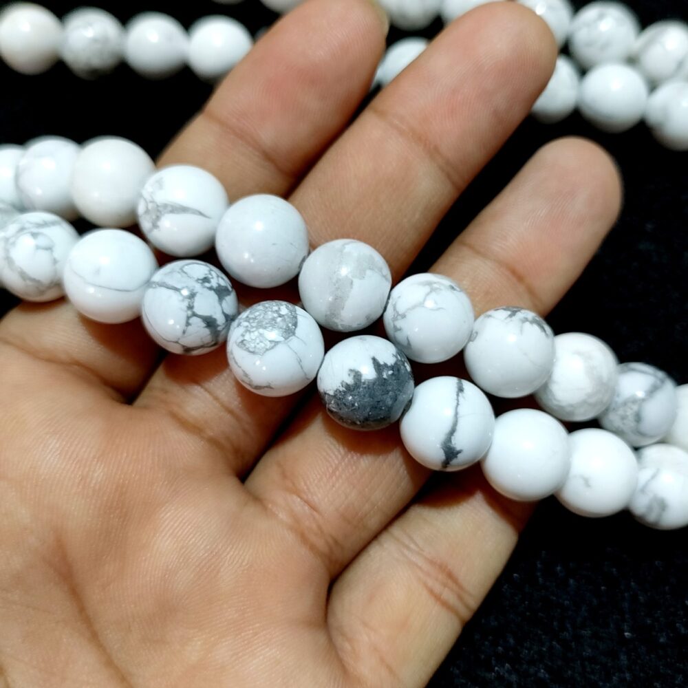 💖 USAGE – Howlite is a beautiful white or grayish stone often with gray or black veining. It’s known for its calming qualities and is often used to reduce stress and anxiety. Here are some of its believed benefits: Emotional and Mental Well-being: Calming and Soothing: Howlite is highly regarded for its ability to calm an overactive mind and reduce stress, tension, and anxiety. It promotes peace and tranquility. Patience: It’s said to teach patience and help to eliminate rage, uncontrolled anger, and irritability. Reduces Negativity: Howlite is believed to absorb negative energy, both from the environment and from within the wearer.
