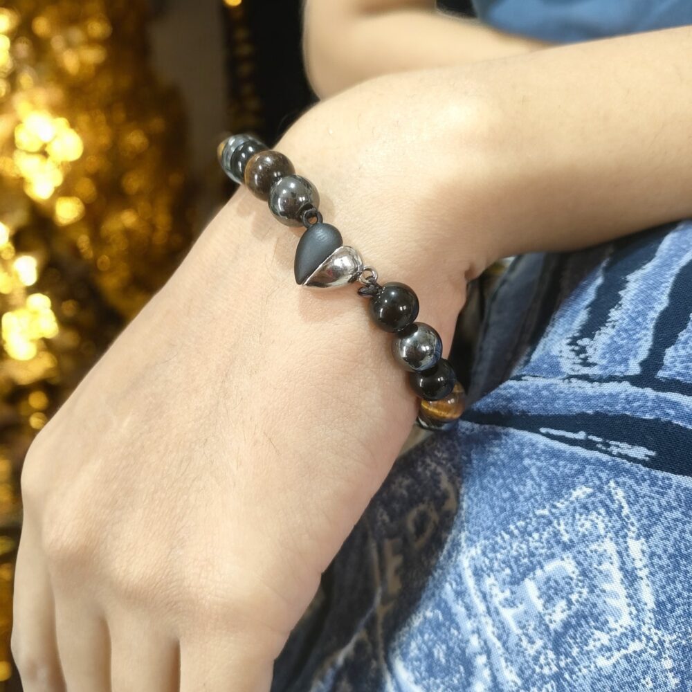 💖The idea of combining magnets with triple protection bracelets (Tiger’s Eye, Black Obsidian, and Hematite) often comes from the belief that magnets can enhance or complement the energetic properties of crystals. While the benefits of the individual crystals are largely based on metaphysical beliefs and traditional practices, the addition of magnets introduces a separate realm of potential effects related to magnetic therapy. Here’s a breakdown of the perceived benefits when magnets are incorporated into triple protection bracelets: Benefits from the Crystals (as discussed previously): Black Obsidian: Strong protection against negative energy, grounding, emotional healing, releasing trauma. Tiger’s Eye: Confidence, courage, mental clarity, attracting abundance, protection from ill intentions. Hematite: Grounding, transmuting negative energy, balancing mind-body-spirit, promoting focus. (Note: Pure hematite is generally weakly magnetic or non-magnetic, though some forms, or “magnetic hematite” which is often a synthetic material, can be strongly magnetic).